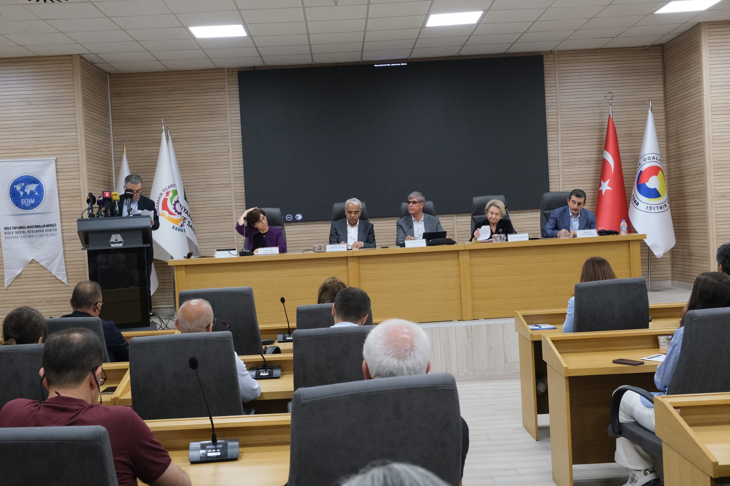 “Barışı inşa etmenin siyasal ve hukuksal temelleri” başlığı altında gerçekleştirilen oturumda konuşan DEM Parti Milletvekili Mithat Sancar, bu sürecin dünyadaki barış süreçlerine benzemediğinin altını çizerek, “Türkiye’de yaşadığımız, dünyada yaşanan süreçlerden farklıdır. Dünyada ilk örnek diyebileceğimiz bir tecrübenin içinde bulunuyoruz. Çatışma çözümü ya da barış inşası konusunda dünyada yaşanan süreçlerin hepsinden farklıdır. İlk deneme diyebiliriz. Başarıya ulaşacağına inancımızı vurgulayarak şöyle diyeyim. Başarıya ulaşırsa, dünya literatürüne de aynı zamanda buradan, Türkiye’den, Mezopotamya’dan bir katkı sunmuş olacağız. O nedenle hem hedef büyük hem sorumluluk ağırdır.” dedi.